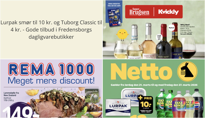 Vi har kigget på denne uges tilbudsaviser for dagligvarebutikker i Fredensborg og fundet nogle supergode tilbud. Her er et udpluk af de bedste tilbud fra Netto, Rema 1000 og SuperBrugsen.